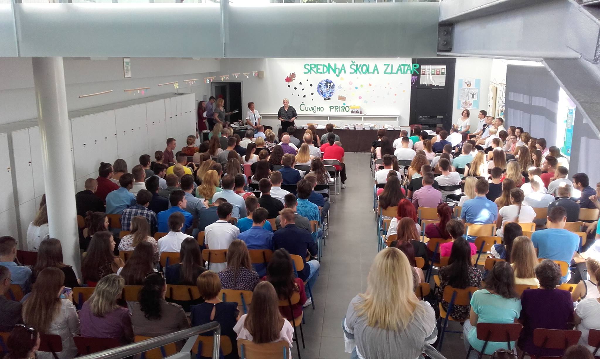 Danas je u Srednjoj školi Zlatar održana završna svečanost generacije maturanata 2016./2017. Nakon uvodnih riječi naše ravnateljice Zdenke Rogina gradonačelnica Grada Zlatara Jasenka Auguštan-Pentek našim učenicima uručila je priznanja Grada Zlatara, a koja nisu bila uručena na posebnoj priredbi održanoj 5. svibnja 2017. jer su uspjesi naših učenika ostvareni nakon tog datuma. Učenicima naše škole koji su prvi put darovali krv uručene su zahvalnice Hrvatskog crvenog križa i Srednje škole Zlatar za iskazanu humanost, plemenitost i ljubav prema čovjeku. Zahvalnice je uručila ravnateljica Gradskog društva Crvenog križa Zlatar Vesna Pavleković i naša ravnateljica. Učenicima su uručene i pohvalnice Srednje škole Zlatar za doprinos radu i promociju škole. Naši učenici pokazali su nam zašto su bili pozvani na Državnu smotru Lidrano izvedbom svoje predstave O ljubavi, prijateljstvu, kriminalu, sportu i politici. Nastupile su i naše zborašice pod vodstvom dirigentice, profesorice Josipe Hopek, a Barbara Milički izvela nam je pjesmu Sonje Brčić: Gda babica je štruklje pekla, kojom se i predstavila na Državnoj smotri Lidrano. Našim maturantima ovom su prilikom uručene njihove svjedodžbe i nagrade za odličan uspjeh. Robertu Svibnu, koji je sva četiri razreda završio s prosjekom ocjena 5,0, uručena je posebna nagrada Srednje škole Zlatar. Svim učenicima koji su predstavljali školu na državnim, međužupanijskim i drugim natjecanjima i smotrama te njihovim mentorima Škola je zahvalila posebnim znakom pažnje - knjigom odnosno ružom. Svečanost je završila zatvaranjem vremenske kapsule naših maturanata. U kapsulu su položena promišljanja maturanata o tome kako se vide u budućnosti te što se sve nadaju postići i fotografija razreda. Vremenska kapsula bit će otvorena na dan kada će se maturanti generacije 2016/2017. ponovno okupiti povodom obilježavanja desete obljetnice mature. Više slika sa završne svečanosti možete pogledati u fotogaleriji. Svim maturantima želimo uspjeh u njihovom daljnjem putovanju kroz život!