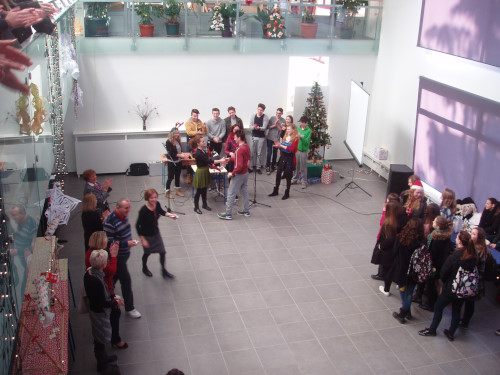 Razred 3g1 organizirao je humanitarnu božićnu tombolu za učenike i profesore, a dečki iz 4.r i 4. lt razreda podizali su atmosferu pjesmom, gitarama i harmonikama....